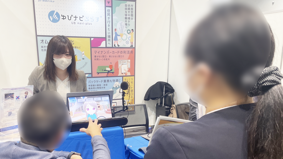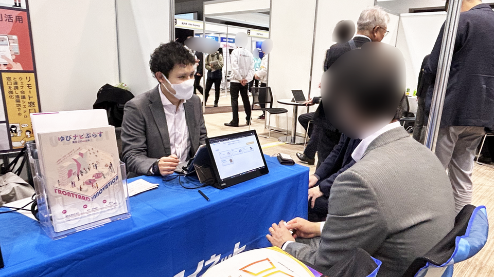 今回、会津若松市様とのコラボブースにて、『新庁舎DXSaaS「ゆびナビぷらす」利用率9割の秘密とは!?』をテーマに当社フロントヤード改革ソリューション「ゆびナビぷらす~窓口DXSaaS版~」などを展示させていただきました。